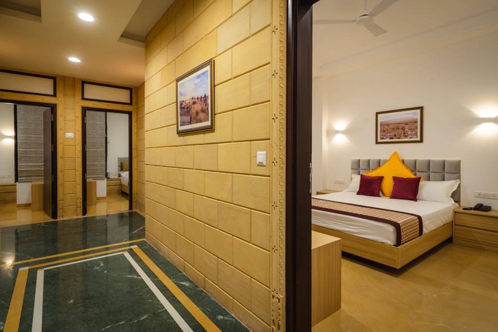 Hotel Aradhya is a comfortable stay option in Jaisalmer’s Achalvanshi Colony, featuring air-conditioned rooms with TV, tea/coffee kettles, and hot water facilities. Guests enjoy a relaxing atmosphere, easy access to local attractions, and welcoming service that ensures a memorable desert stay.